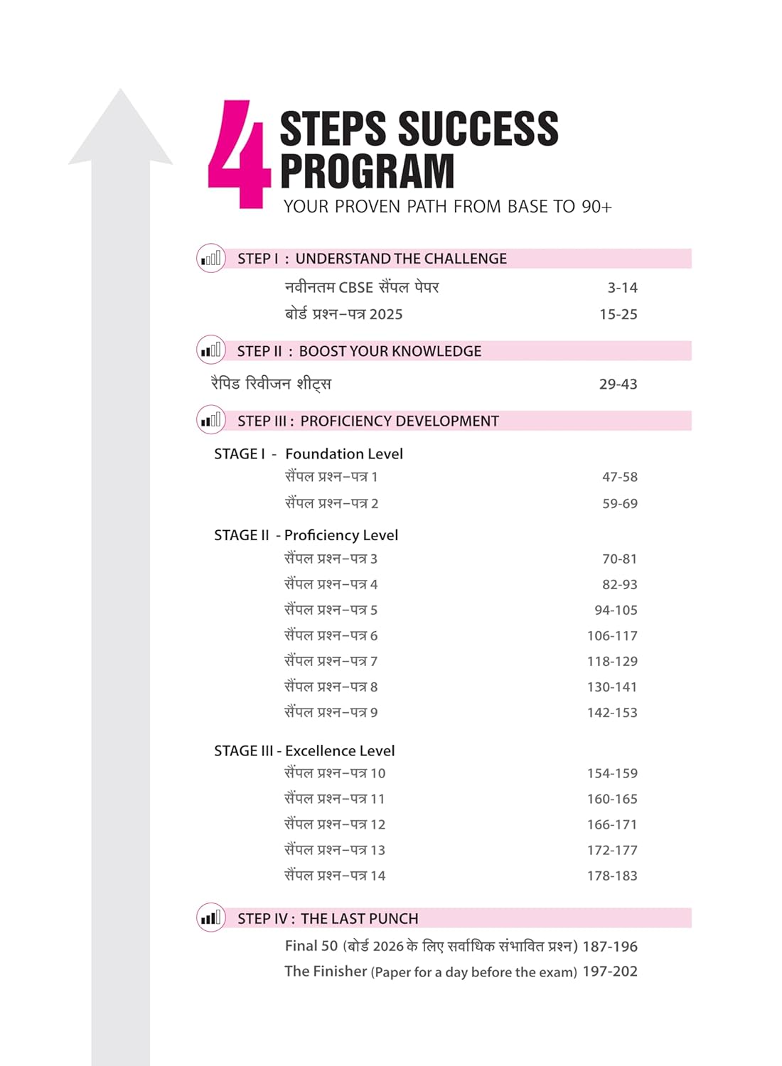 In addition to the sample papers, this edition features a fully solved 2025 CBSE Board Paper, Mind Maps for quick concept recall, Chapter Tests for focused preparation, and a Final Revision section to boost confidence. Ideal for students who want structured and effective practice in Hindi Course-B.