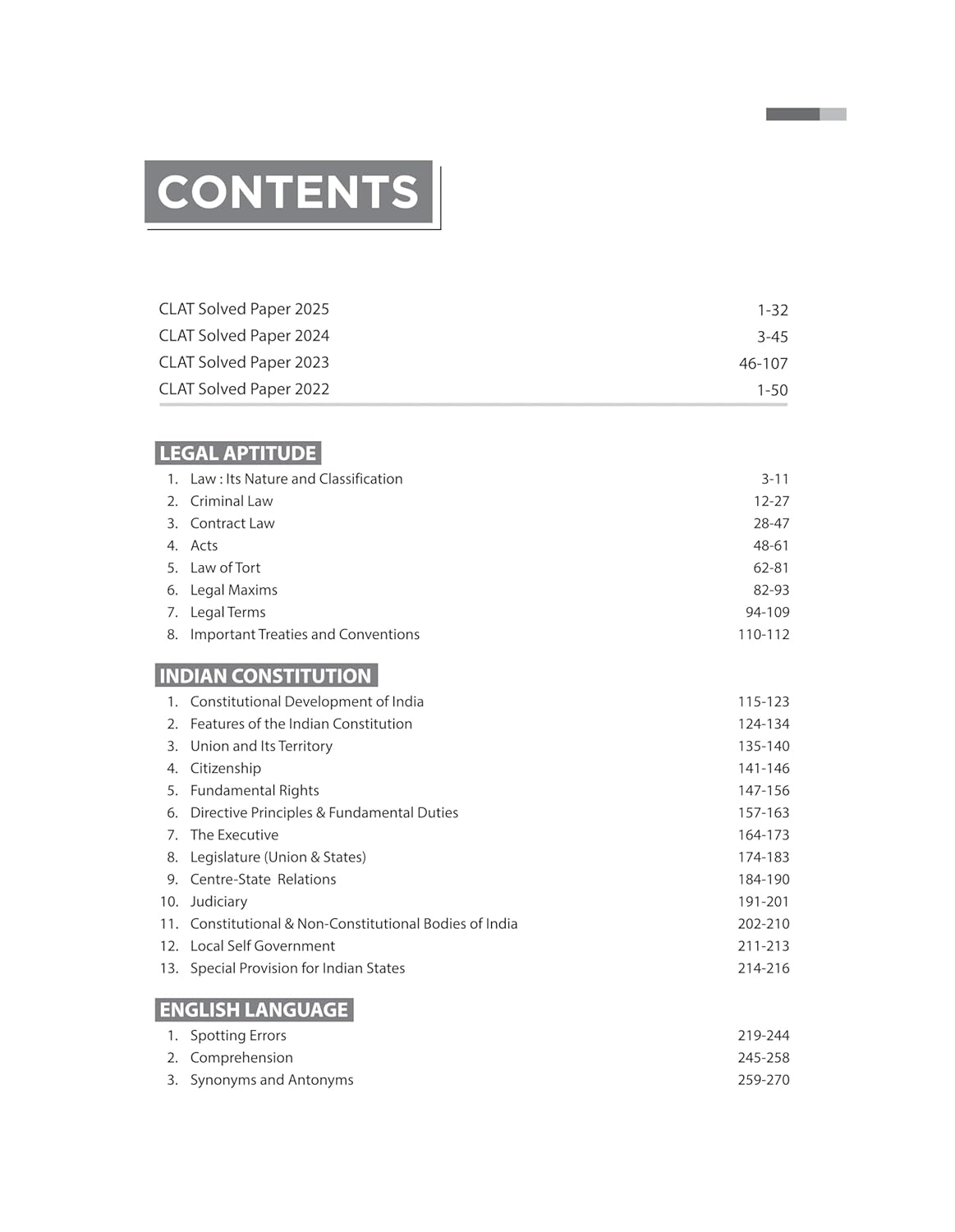 The Arihant CLAT Conqueror 2026 is a comprehensive preparation book for aspirants of the Common Law Admission Test (CLAT 2026). It provides chapterwise theory for all sections: Legal Aptitude, Logical Reasoning, English, Quantitative Techniques, General Knowledge, and Current Affairs. The book includes previous years’ questions, 3 full-length practice sets, and detailed explanations to enhance conceptual clarity, speed, and accuracy. Designed for English medium aspirants, it is ideal for self-study, revision, and mock practice, helping aspirants conquer CLAT 2026 confidently.