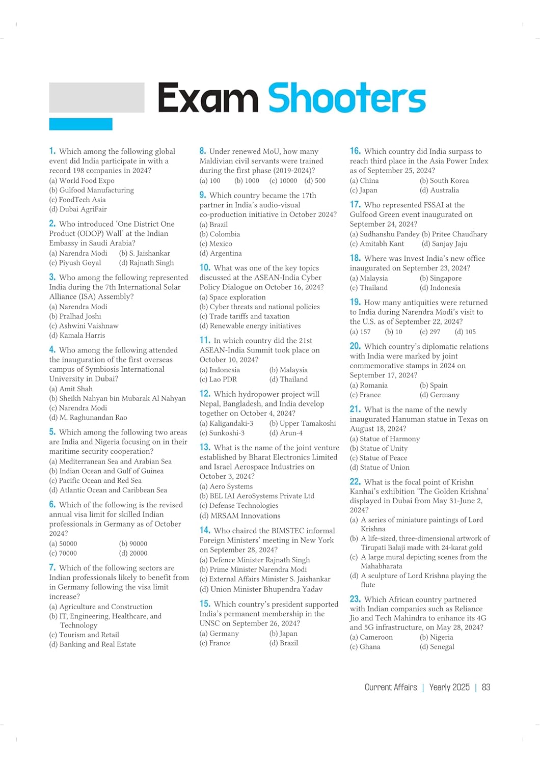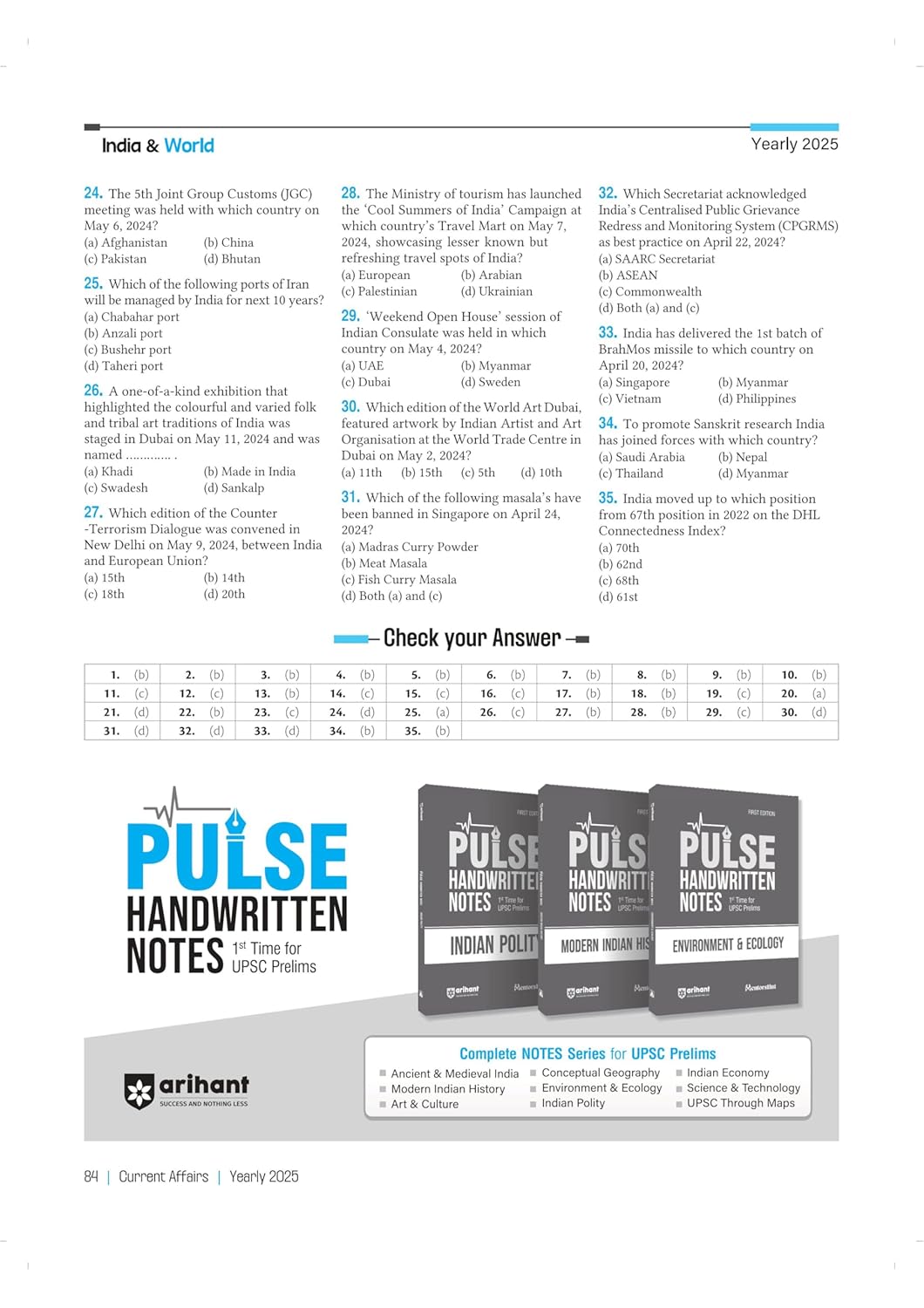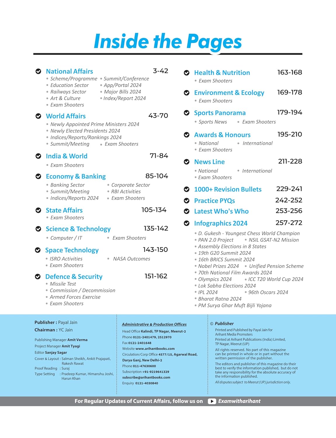 Arihant Current Affairs Yearly 2025 is a complete and up-to-date compilation of national and international events from January 2024 to present, designed to help aspirants stay informed for various competitive exams. The book provides section-wise coverage of 400+ MCQs, 1000+ revision bullets, and detailed highlights on major topics such as politics, sports, economy, science & technology, awards, and international summits. It includes updates on the Union Government, Chief Ministers, and key bureaucrats along with exclusive coverage of significant events like the G20 Summit 2024, Union Budget 2024–25, and General Elections 2024. Ideal for UPSC, State PSCs, SSC, NDA, CDS, Banking, and other government exams, this edition continues Arihant’s 19-year legacy as India’s most trusted resource for current affairs preparation.