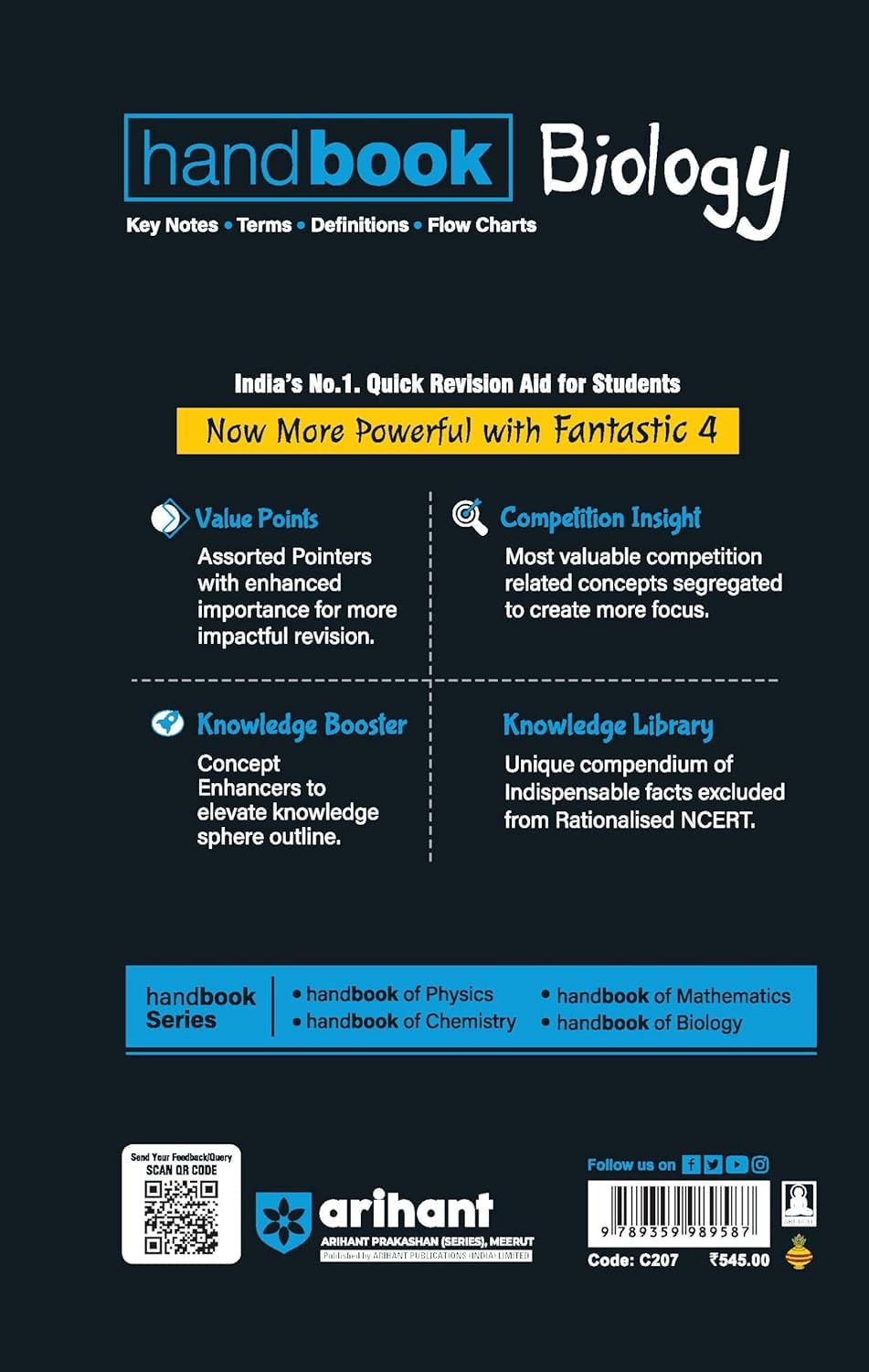 A quick-reference handbook covering all important concepts, definitions, and diagrams of Biology in a concise manner. Designed for students preparing for NEET, AIIMS, Class 11th & 12th boards, and other competitive examinations, this book includes well-structured summaries, key notes, and tables for faster learning and revision. It is highly useful for last-minute preparation and quick concept recall.