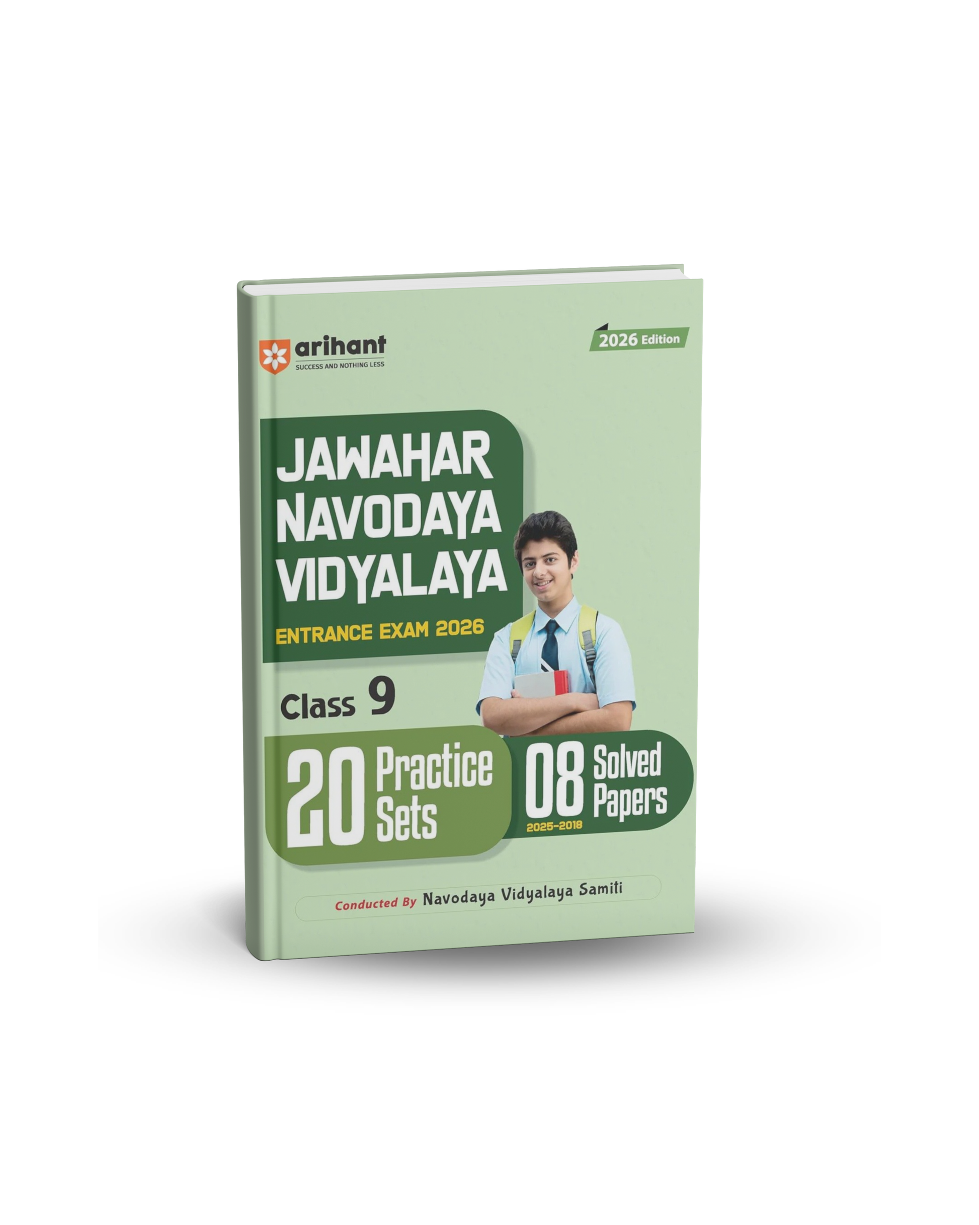 Arihant Jawahar Navodaya Vidyalaya Entrance Exam 2026, class 9 admission guide, includes 20 practice sets and 8 solved papers 2018 to 2025, based on latest exam pattern, conducted by Navodaya Vidyalaya Samiti, comprehensive preparation book for JNVST 2026, includes reasoning mathematics and language sections, helps students improve speed accuracy and exam strategy, ideal for self-practice and school entrance preparation