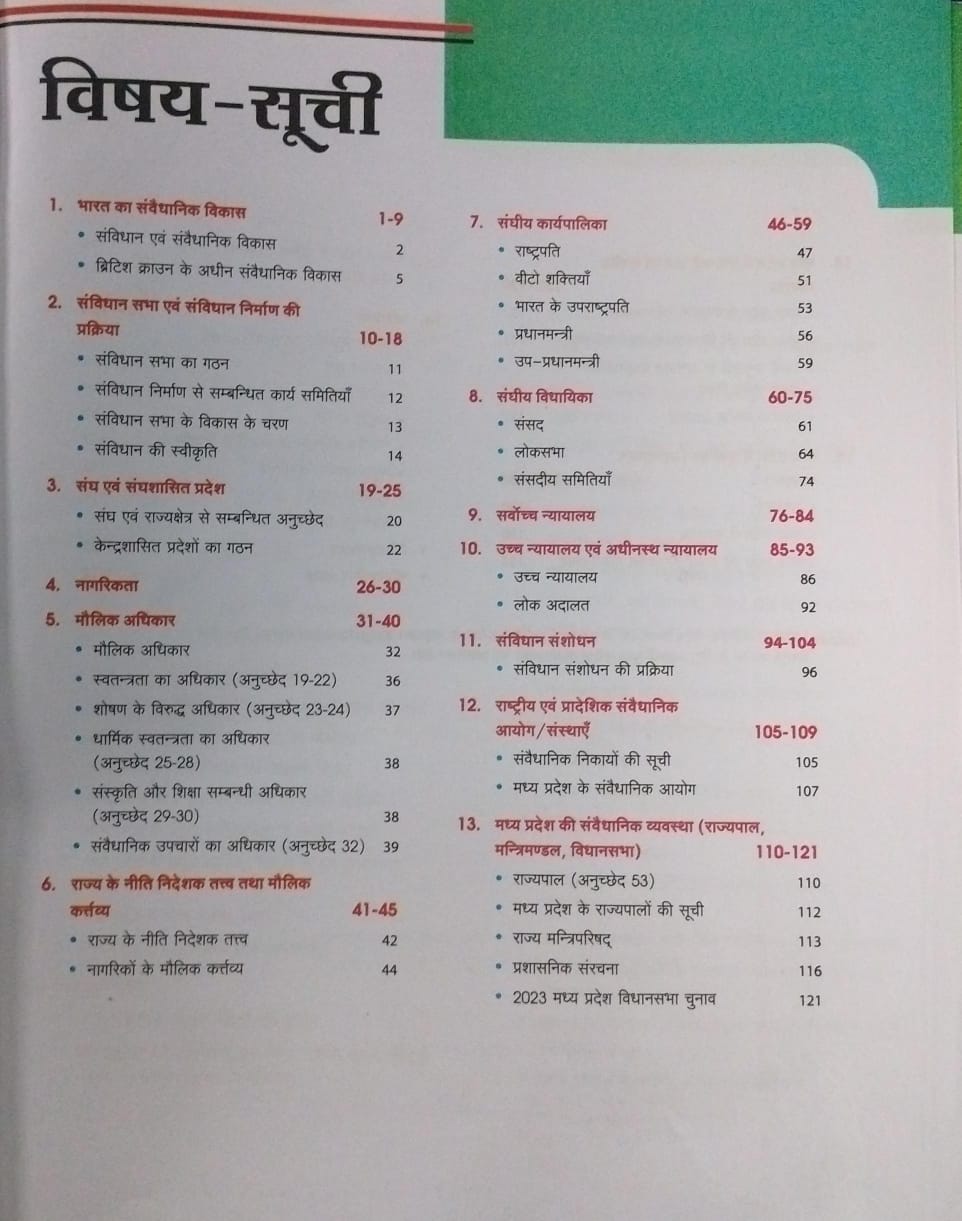 Unit 5 of Arihant MPPSC 2.0 Prelims focuses on the Constitutional System of India and Madhya Pradesh. It covers the structure, features, and functioning of the Indian Constitution along with the administrative and political framework of Madhya Pradesh. Topics include the Preamble, Fundamental Rights and Duties, Directive Principles, State Legislature, Executive, Judiciary, Local Governance, and Constitutional Amendments. The content is presented in a simple and exam-oriented manner with practice questions for effective preparation.