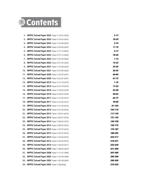 MPPSC Pre Exam General Studies & Aptitude Test (Paper I & II) is a comprehensive guide for aspirants preparing for Madhya Pradesh Public Service Commission (MPPSC) Prelims 2025. This English Medium edition provides chapterwise solved papers from 2003 to 2025, covering General Studies, General Aptitude, and Current Affairs. With detailed solutions and explanations, it helps candidates understand exam patterns, improve problem-solving speed, and strengthen concepts. Ideal for MPPSC Prelims aspirants seeking complete practice and revision in one book.