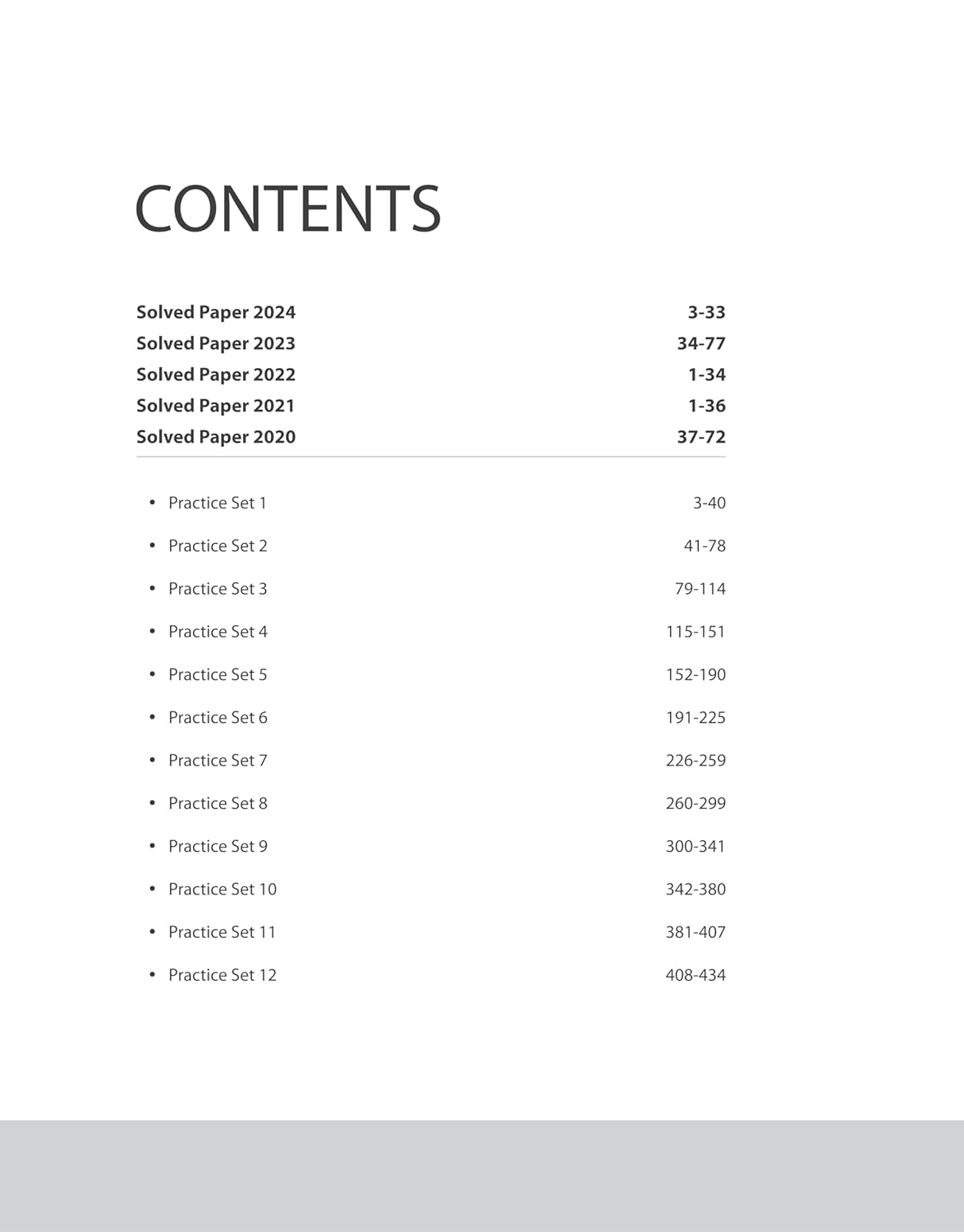 This Arihant New Pattern CLAT 2025 book is designed to help CLAT aspirants prepare thoroughly under the latest exam format. It includes 5 fully solved past papers (2020-2024) and 12 practice sets strictly following the new CLAT pattern with passage-based MCQs. Each question comes with detailed and authentic explanations. The content is completely revised for CLAT 2025, providing a vast collection of quality questions for rigorous practice and performance assessment.