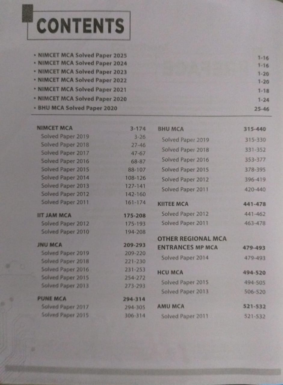 Arihant Publication – MCA Entrance Solved Papers is a comprehensive collection of previous years’ solved question papers designed for aspirants preparing for various MCA entrance examinations such as NIMCET, BHU, JNU, DU, and other state-level MCA tests. The book provides detailed and accurate solutions to all questions, helping students understand the exam pattern, difficulty level, and topic-wise distribution. It covers key areas including Mathematics, Logical Reasoning, Computer Awareness, and English Language. Each paper is solved with step-by-step explanations to enhance conceptual clarity and problem-solving speed. This book serves as an excellent resource for practice, revision, and self-assessment, helping students build confidence and improve performance in MCA entrance exams.