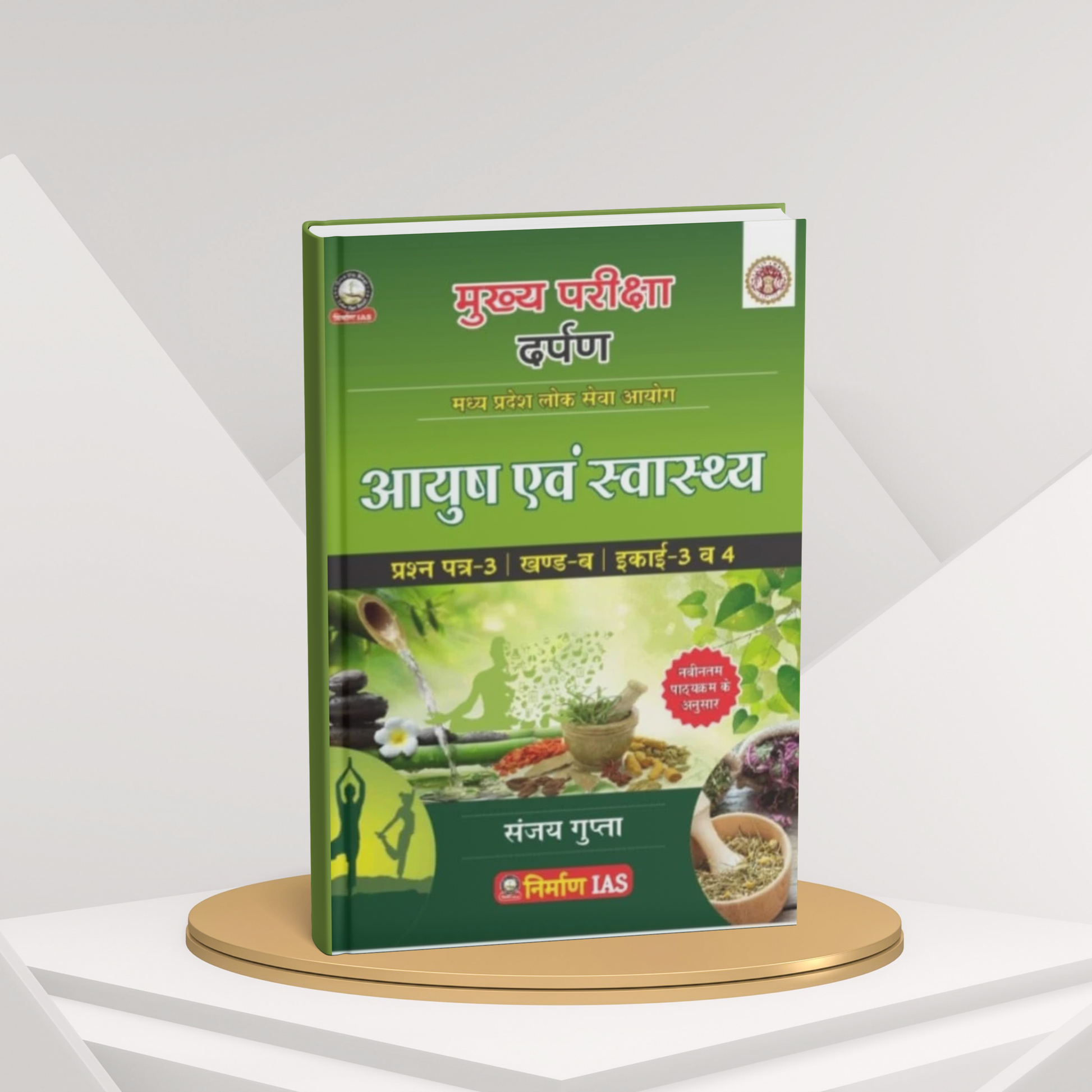 "Ayush Awam Swasthya Nirman" is a comprehensive study guide specially designed for IAS, MPPSC, and other competitive exam aspirants preparing in Hindi medium. This material covers the crucial topics related to Ayush systems (Ayurveda, Yoga, Unani, Siddha, Homeopathy) and overall public health development in India, with a focus on Madhya Pradesh.