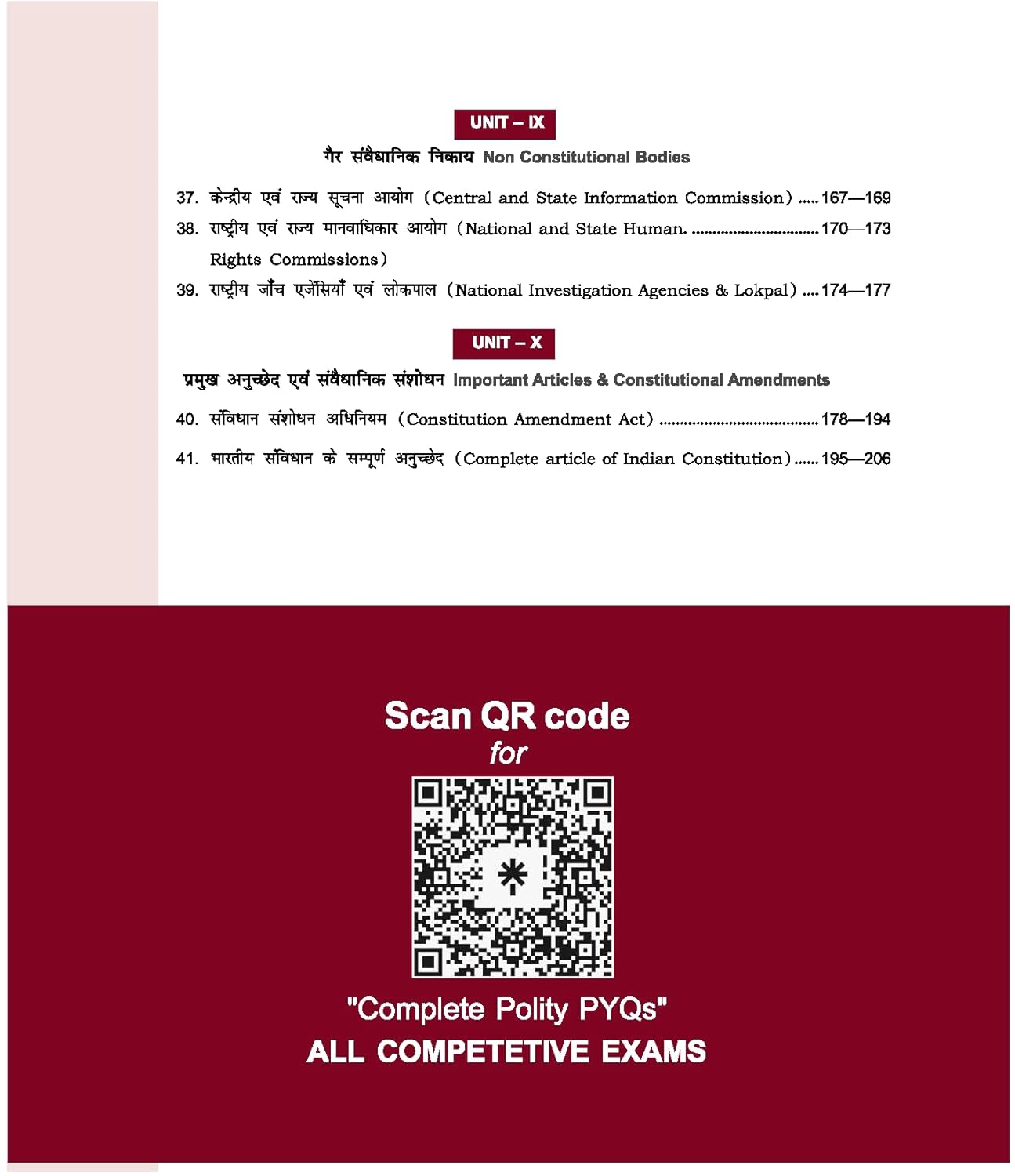 This comprehensive guide from CareerWill is specially crafted for aspirants of competitive exams (SSC, State PSC, Railway, Banking, Police) who need a solid grounding in Indian polity and governance. Covering the latest syllabus and exam-pattern, the book explains the core concepts of the Indian Constitution, Union and State structure, fundamental rights & duties, electoral system, centre-state relations, local self-government, and constitutional bodies. Written in a clear and learner-friendly style, it also includes illustrated diagrams, flow-charts, practice questions and previous years’ exam-based MCQs to enhance your understanding and speed. Whether you’re starting fresh or revising for your exam, this book is your go-to resource for mastering Bharatiya Rajvyavastha.