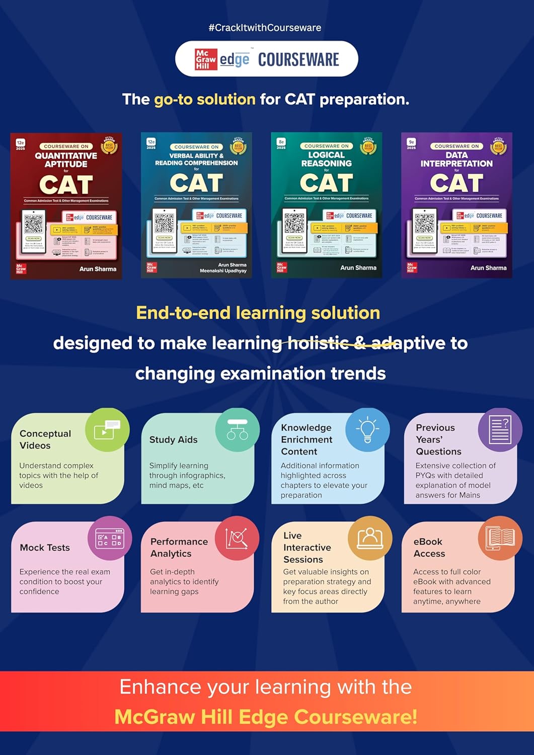 The Courseware on Quantitative Aptitude (12th Edition 2025) by Arun Sharma is the ultimate guide for mastering mathematical aptitude for competitive exams like CAT, XAT, IIFT, and other management entrance tests. Published by McGraw Hill, this latest edition features updated theory, advanced shortcut techniques, and revised question sets based on the current exam trends. Each chapter includes graded difficulty levels, detailed explanations, and conceptual clarity to help learners progress from basics to advanced levels. Ideal for aspirants aiming for precision, speed, and confidence in quantitative problem-solving. š§®šāØ