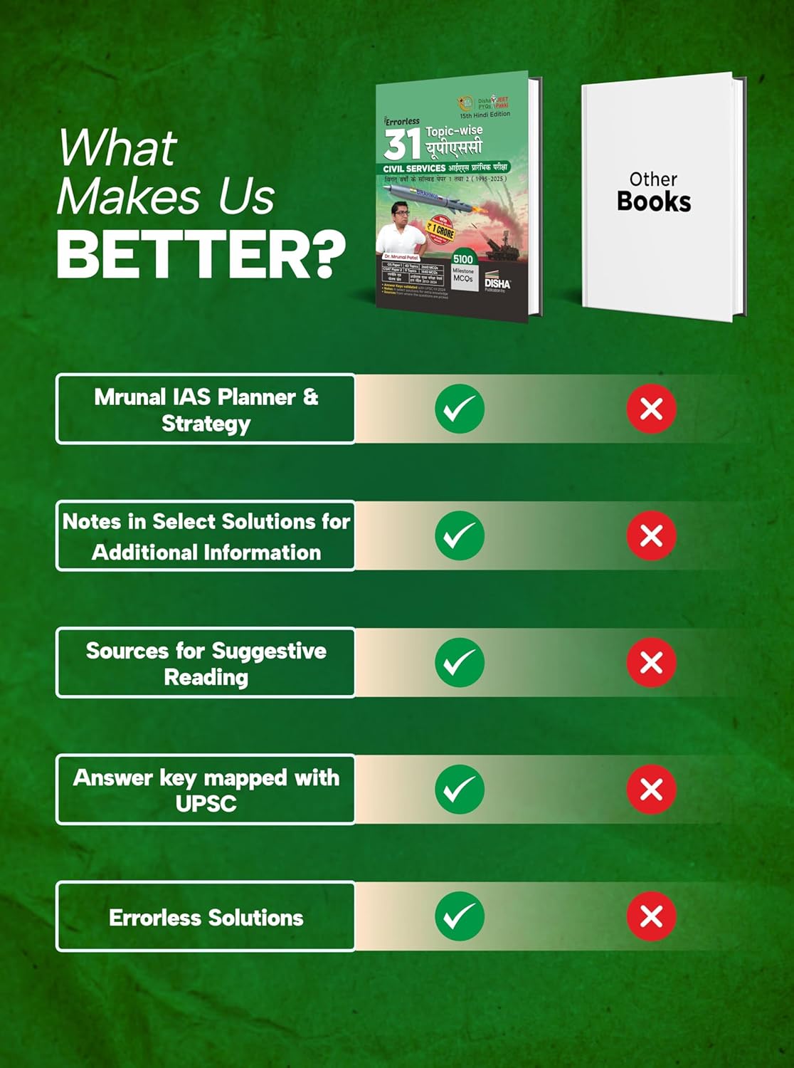 Disha - 31 Years Errorless UPSC Civil IAS by Dr. Mrunal Patel (15th Edition) 5100 MCQs Topic-wise| Hindi Medium