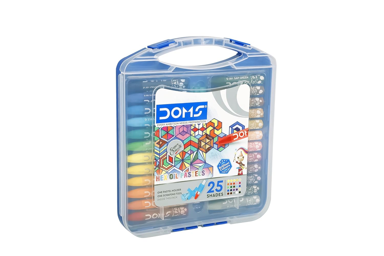 Doms Oil Pastels – 25 Shades | Hard Plastic Case | Free Pastel Holder & Sharpener