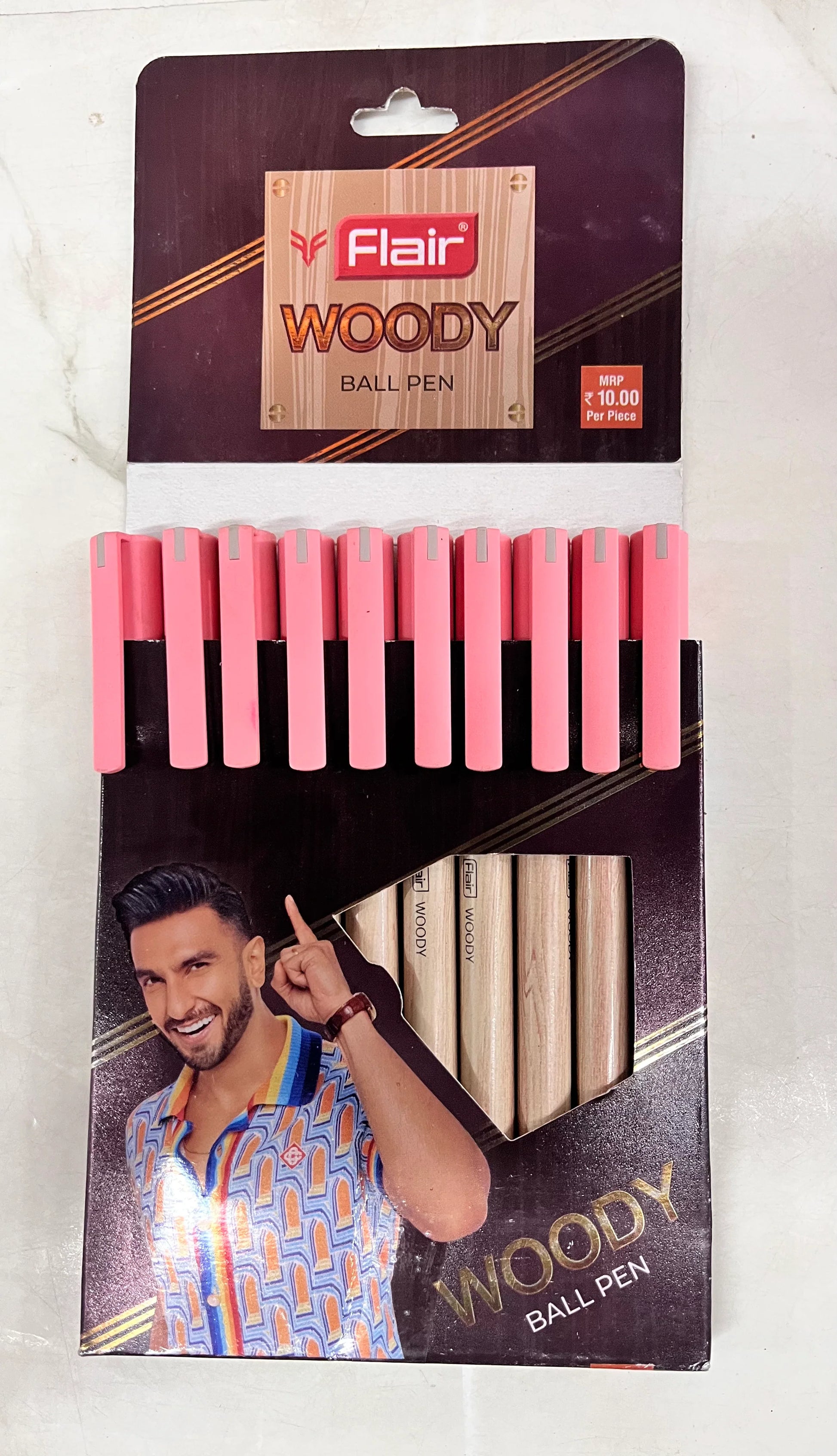 Flair Woody Ball Pen – 10 Piece Pack (Red Ink)