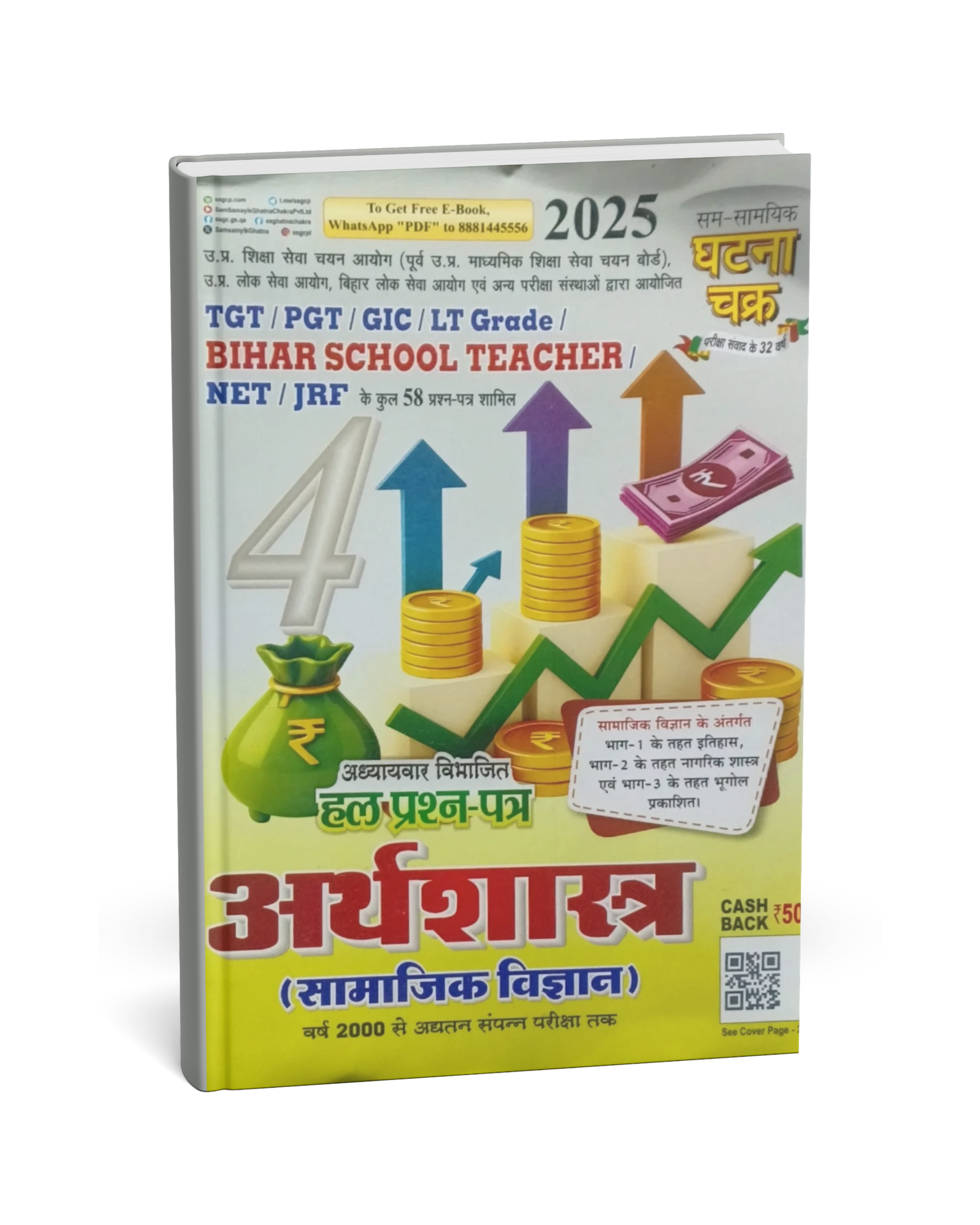 Ghatna Chakra TGT/PGT Arthshastra Samajik Vigyan Bhag 4 is a well-structured and exam-focused book designed for candidates preparing for TGT/PGT Economics and Social Science examinations. This volume provides comprehensive coverage of advanced concepts of Economics, including microeconomics, macroeconomics, economic development, Indian economy, and contemporary economic issues. The content is presented in a simplified and systematic manner, with clear explanations, charts, and topic-wise summaries. Developed according to the latest syllabus of various state-level and national-level teaching exams, this book helps aspirants strengthen conceptual clarity, enhance analytical understanding, and score high in Economics sections of TGT/PGT recruitment tests.