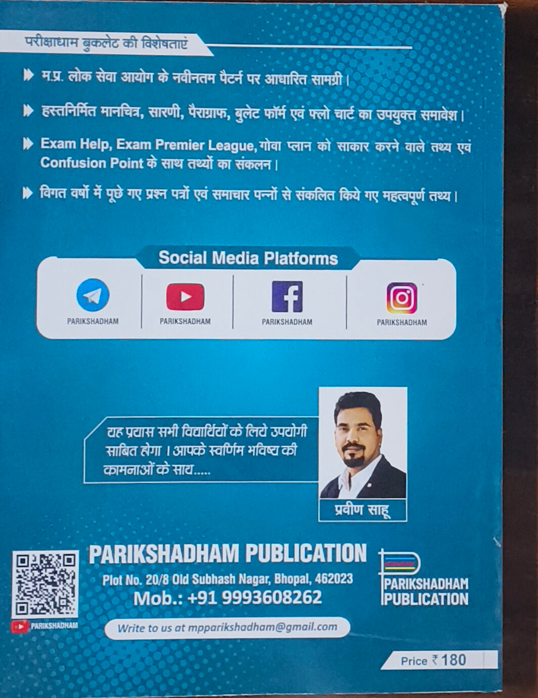Madhya Pradesh Ki Janjati by ParikshaDham is a focused book designed for the MPPSC Preliminary Exam and other state-level competitive exams. It covers detailed information about the tribal communities of Madhya Pradesh, including their population distribution, major and minor tribes (like Gond, Bhil, Baiga, Sahariya), culture, language, traditions, festivals, lifestyle, and constitutional provisions. The book also highlights government schemes, tribal welfare programs, and current developments related to tribal areas. Written in simple Hindi, it includes objective-type questions, facts, and practice sets to help aspirants perform well in the General Knowledge section of MPPSC Pre.