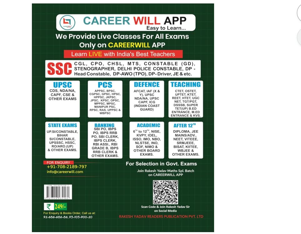 Maths Revision Booster (Bilingual) by Rakesh Yadav – Concise guide covering Algebra, Geometry, Trigonometry, Mensuration & more with shortcuts and solved examples for SSC, Railway, Banking, and Defence exams.
