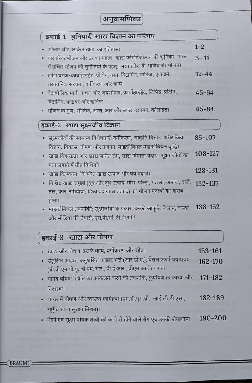 Brahmi MPPSC FSO (Food Safety Officer) Paper-2 Unit 1 to 5(H)