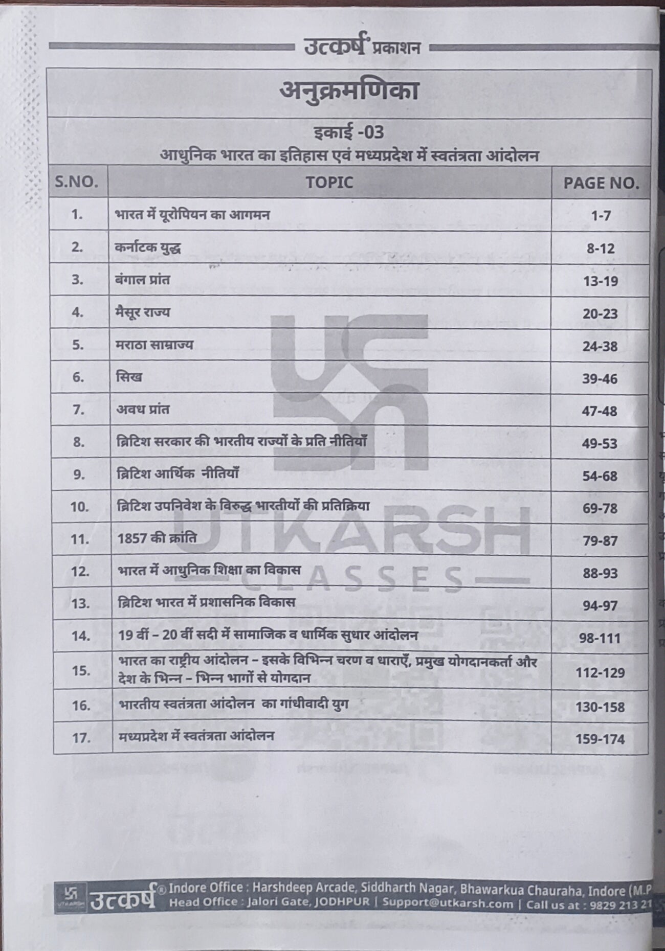 MPPSC Mains Adhunik Bharat ka Itihas evam MP me Swatantrata Andolan By Utkarsh Classes(H)
