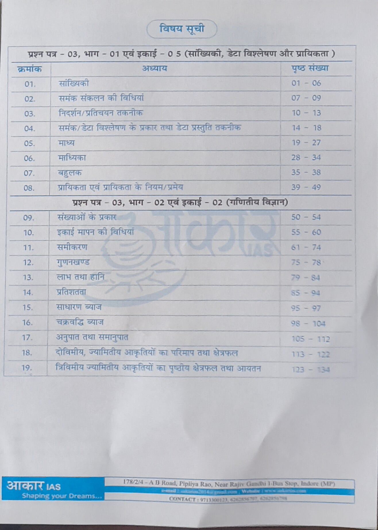 MPPSC Mains: Sankhyiki evam Ganitiy Vigyan By Akar IAS(H)