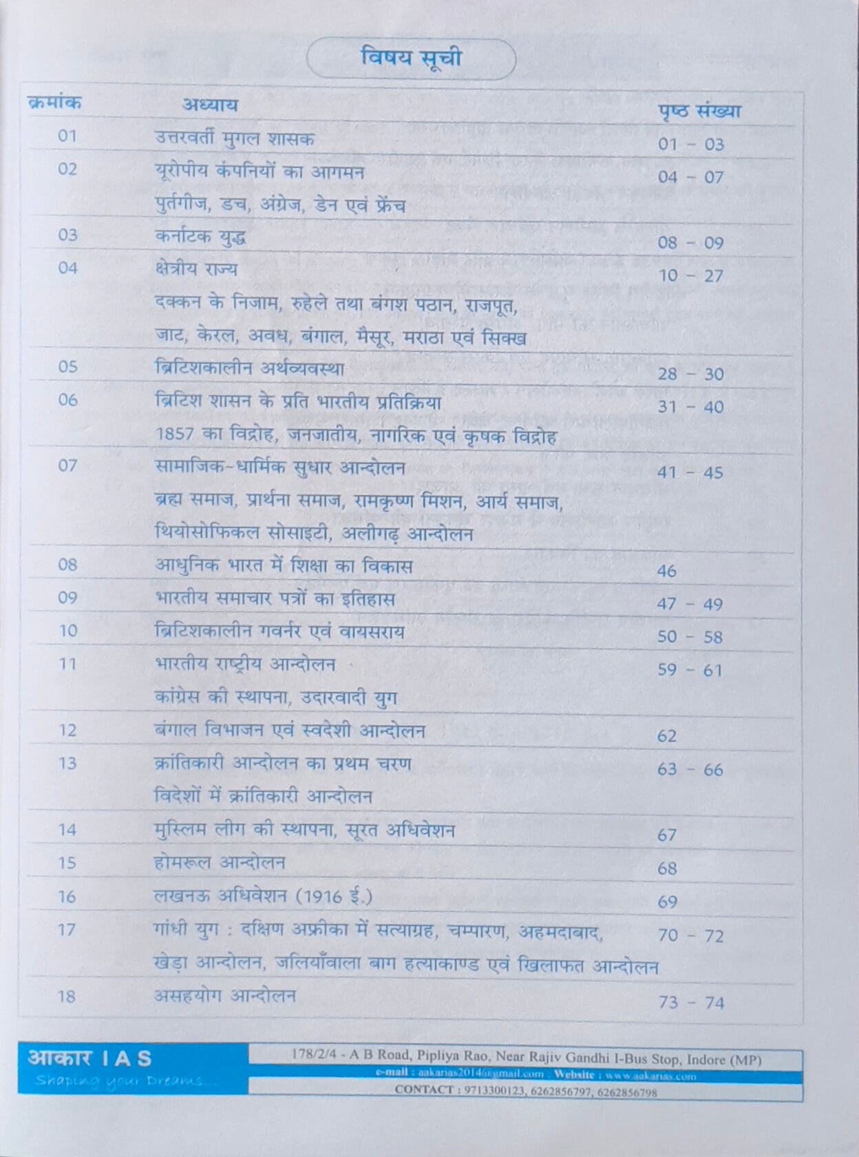MPPSC Pre: Adhunik Bharat Ka Itihas By Aakar Publication(H)