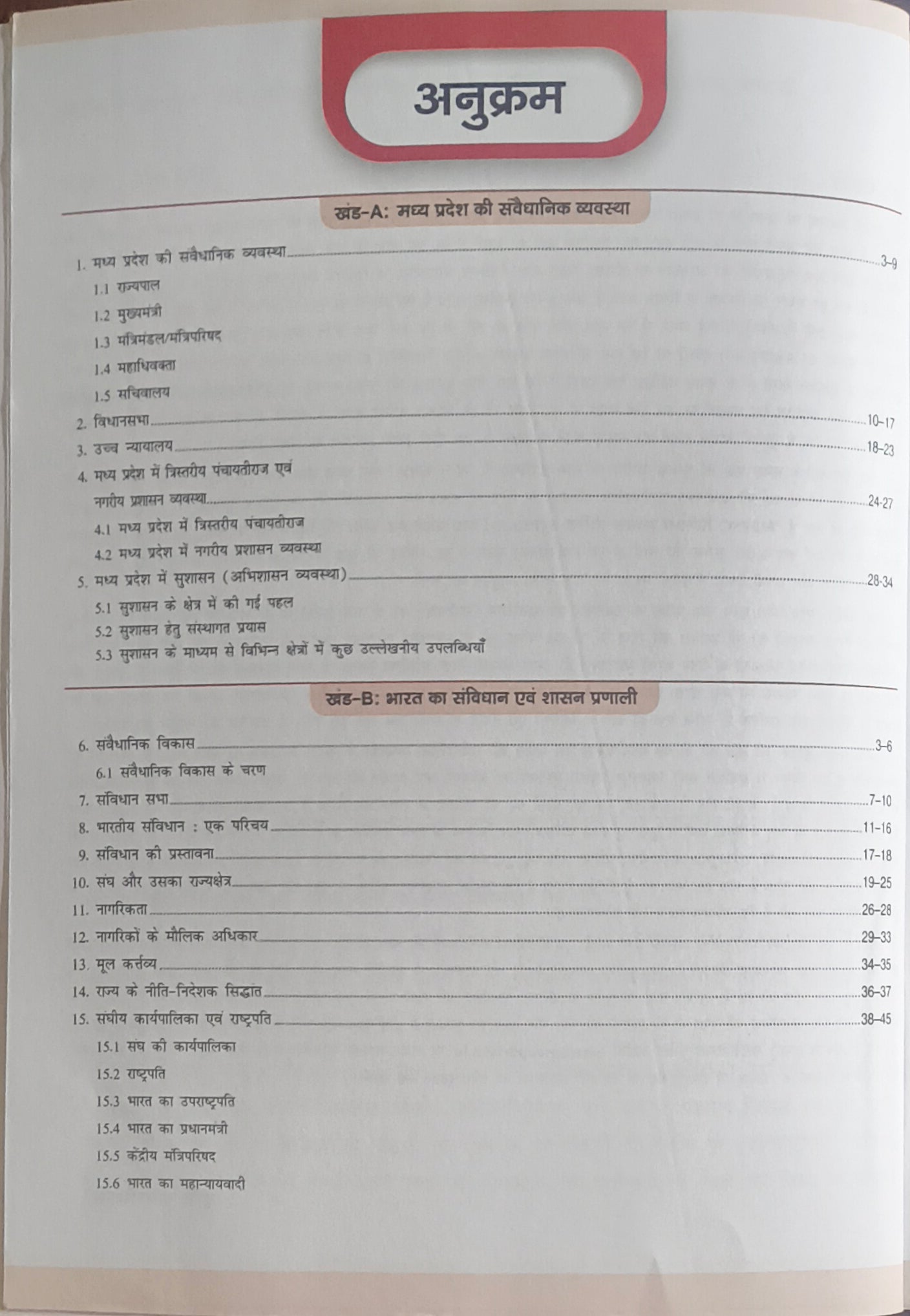 A focused guide for the MPPSC Prelims PSS‑3 section, covering the Constitutional Systems of Madhya Pradesh and India (Sanvidhanik Vyavastha). Updated for the 2025 exam, this Hindi-medium book includes topics like the Indian Constitution, fundamental rights and duties, governance structure, Panchayati Raj, and MP-specific constitutional provisions. Designed with easy-to-understand theory, recent amendments, and practice MCQs tailored for MPPSC prelims.