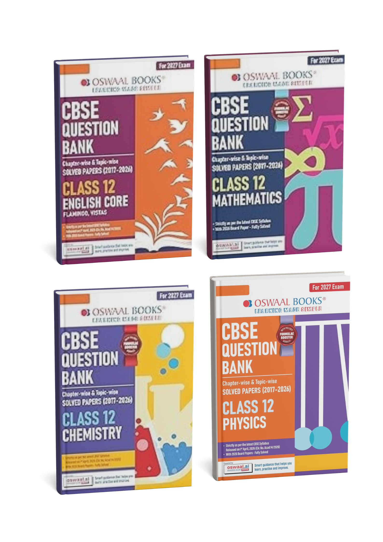 Oswaal CBSE Question Bank for Class 12 (Set of 4 Books) English Core, Physics, Chemistry & Mathematics | Chapter & Topic-wise Solved Papers (2017–2026) For 2027 Edititon