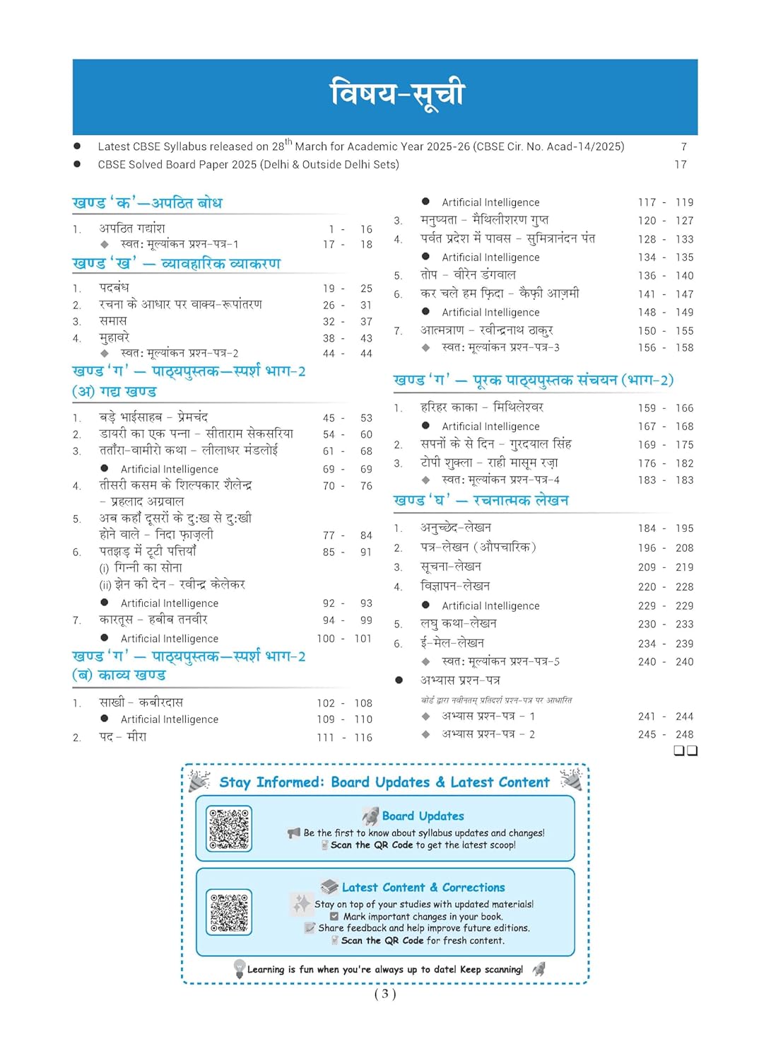 Oswaal CBSE Question Bank for Class 10 Hindi ‘B’ (Sparsh Part-2, Sanchayan Part-2) is designed as per the latest CBSE syllabus released on 28th March 2025. It includes chapterwise and topicwise solved papers from 2016–2025, along with the fully solved 2025 Board Paper. This book provides detailed solutions, exam-oriented practice, and predictive analysis for the 2026 board exams, helping students prepare effectively and score higher in Hindi ‘B’.