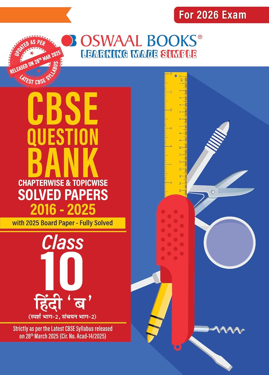 Oswaal CBSE Question Bank Class 10 Hindi ‘B’ | Solved Papers 2016–2025 | For 2026 Exam(E)