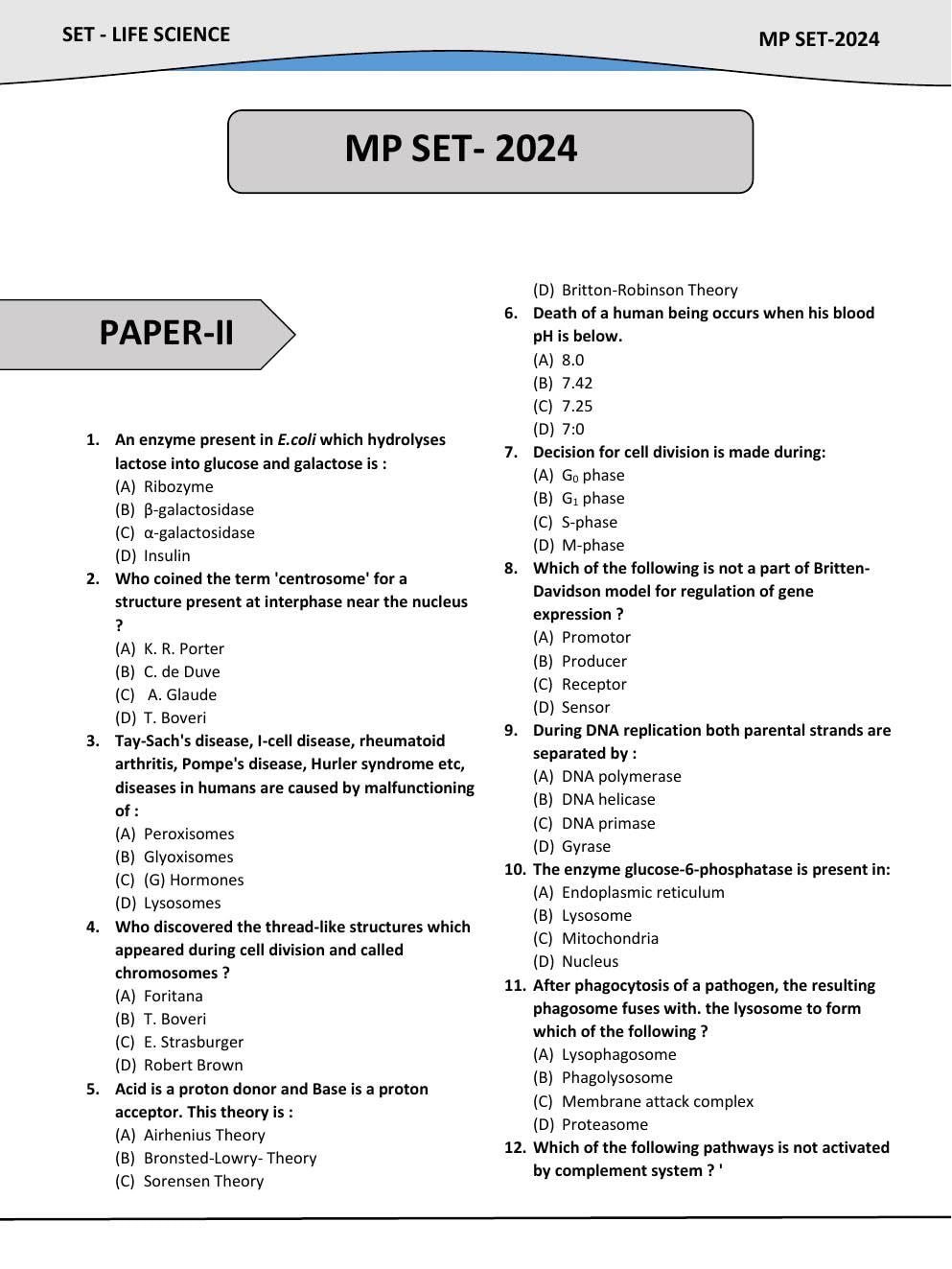 ✅ Covers SET Life Science previous year papers (2011–2022)