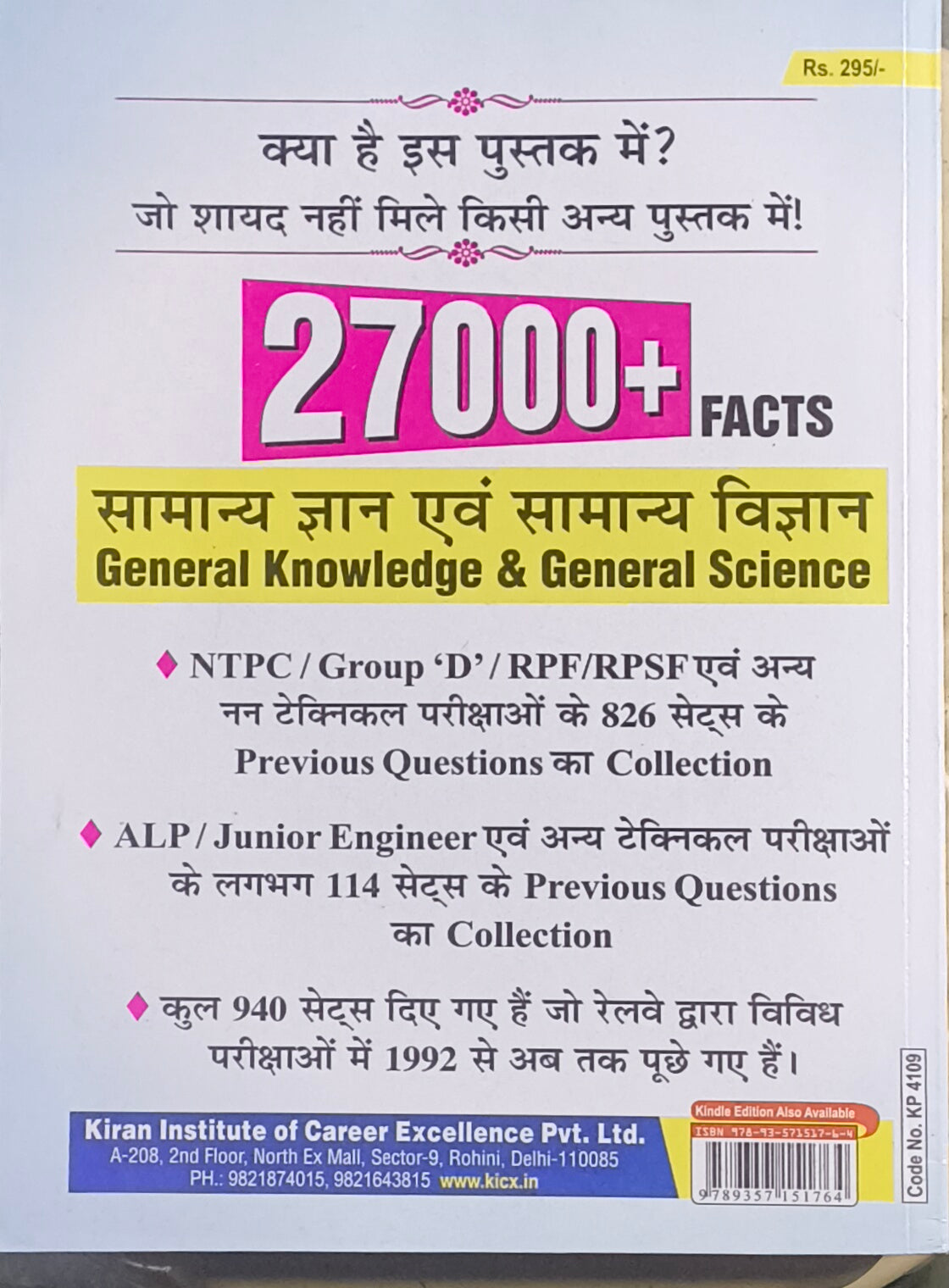 "Railway 27000+ Facts PYQs Question Bank – GK & GS By Kiran Publications (Hindi Medium) "