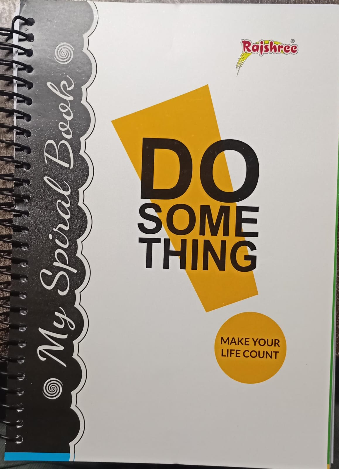 Rajshree My Spiral Book – Do Something Edition ek premium A4 size spiral notebook hai jisme motivational cover message likha hai “Do Something – Make Your Life Count.” Isme smooth high-quality single line pages aur durable spiral binding di gayi hai, jo daily writing, study notes aur creative journaling ke liye perfect hai. Stylish modern design ke saath yeh notebook school, college aur office use ke liye ideal choice hai.