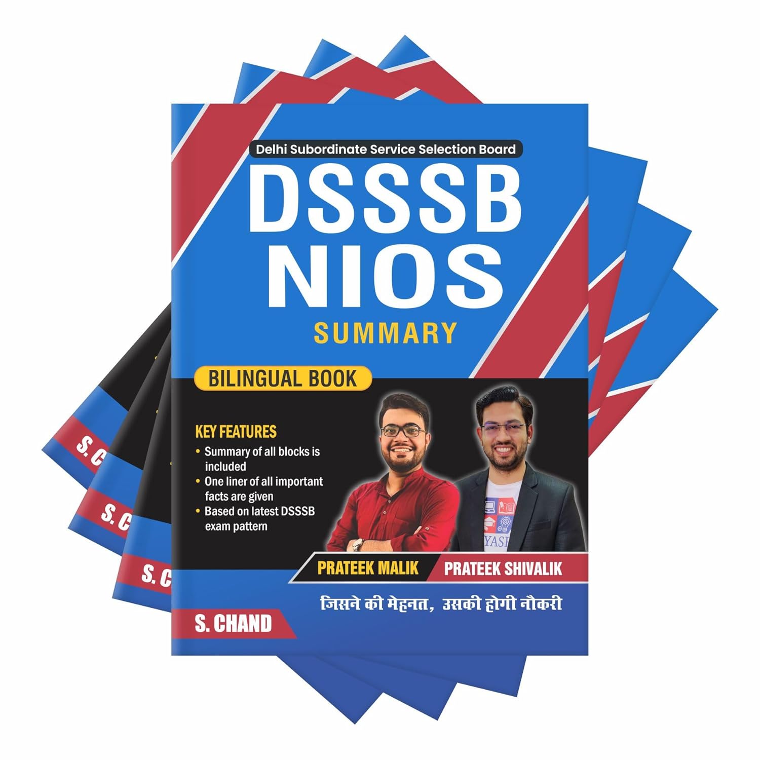 S. Chand DSSSB NIOS Summary Book (Bilingual) DSSSB ke various teaching aur non-teaching exams ke liye specially designed concise guide hai. Yeh book NIOS ke important subjects aur topics ko simple, easy-to-understand Hindi–English bilingual format me summarize karti hai.