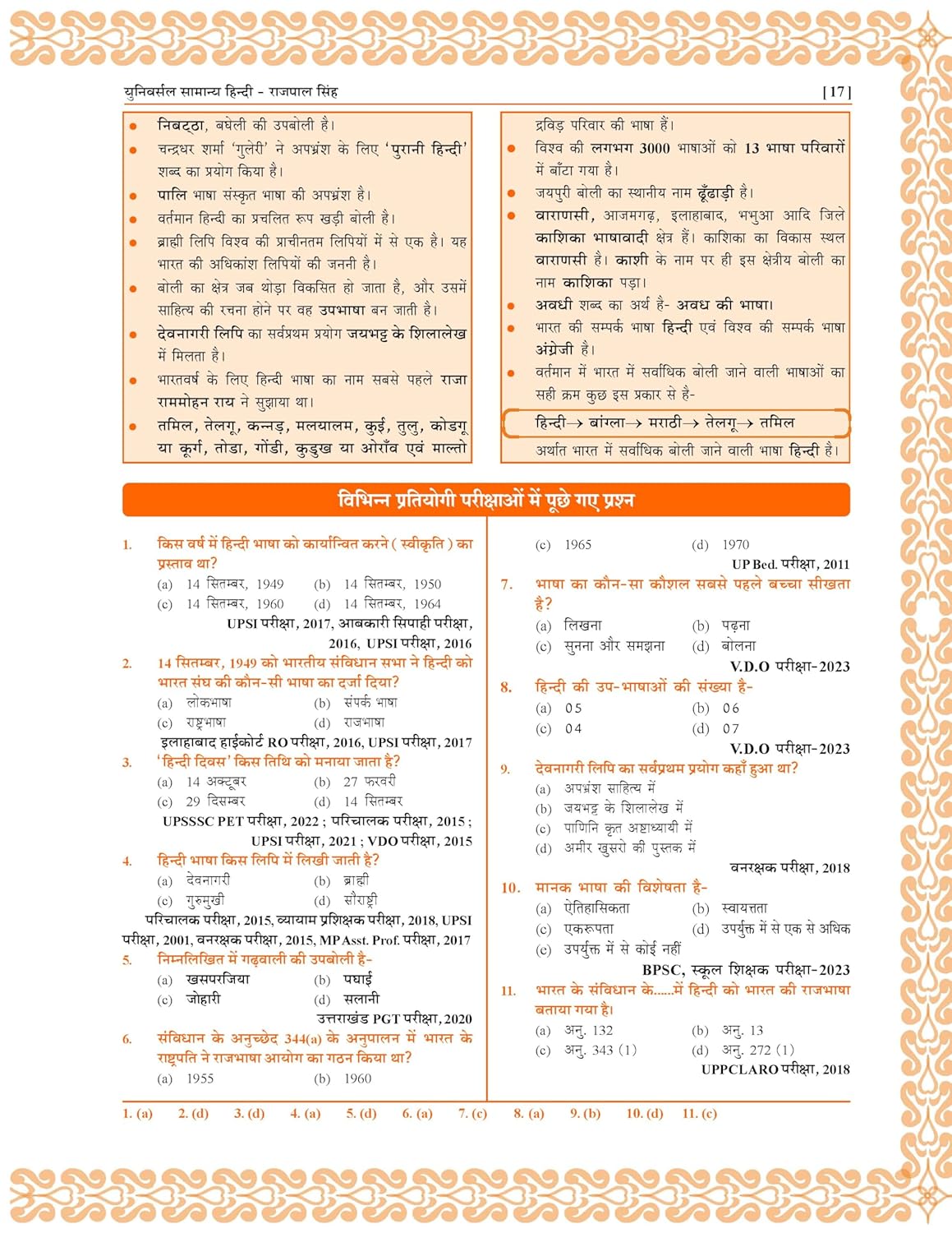 Universal Books Samanya Hindi (5th Edition) by Rajpal Singh is a complete and updated guide designed for all major competitive examinations including UPSC, State PSC, SSC, Banking, Railway, and Teaching exams. This book provides in-depth coverage of Hindi grammar, vocabulary, comprehension, and writing skills, following the latest examination trends.