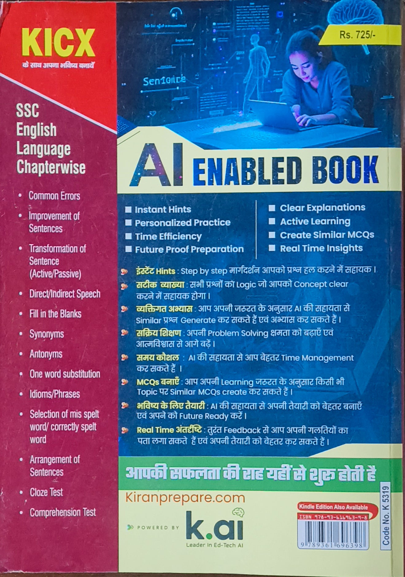 SSC English Language Chapterwise Solved Papers By Kiran Prakashan – Hindi Medium