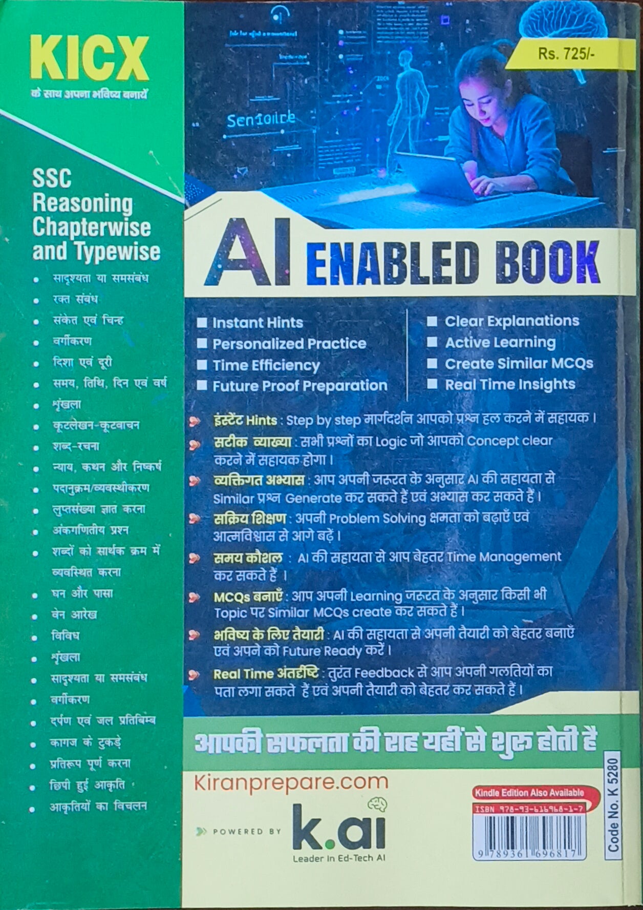"SSC Reasoning Chapterwise Solved Papers (1999–Till Date) By Kiran Prakashan(Hindi Medium) "