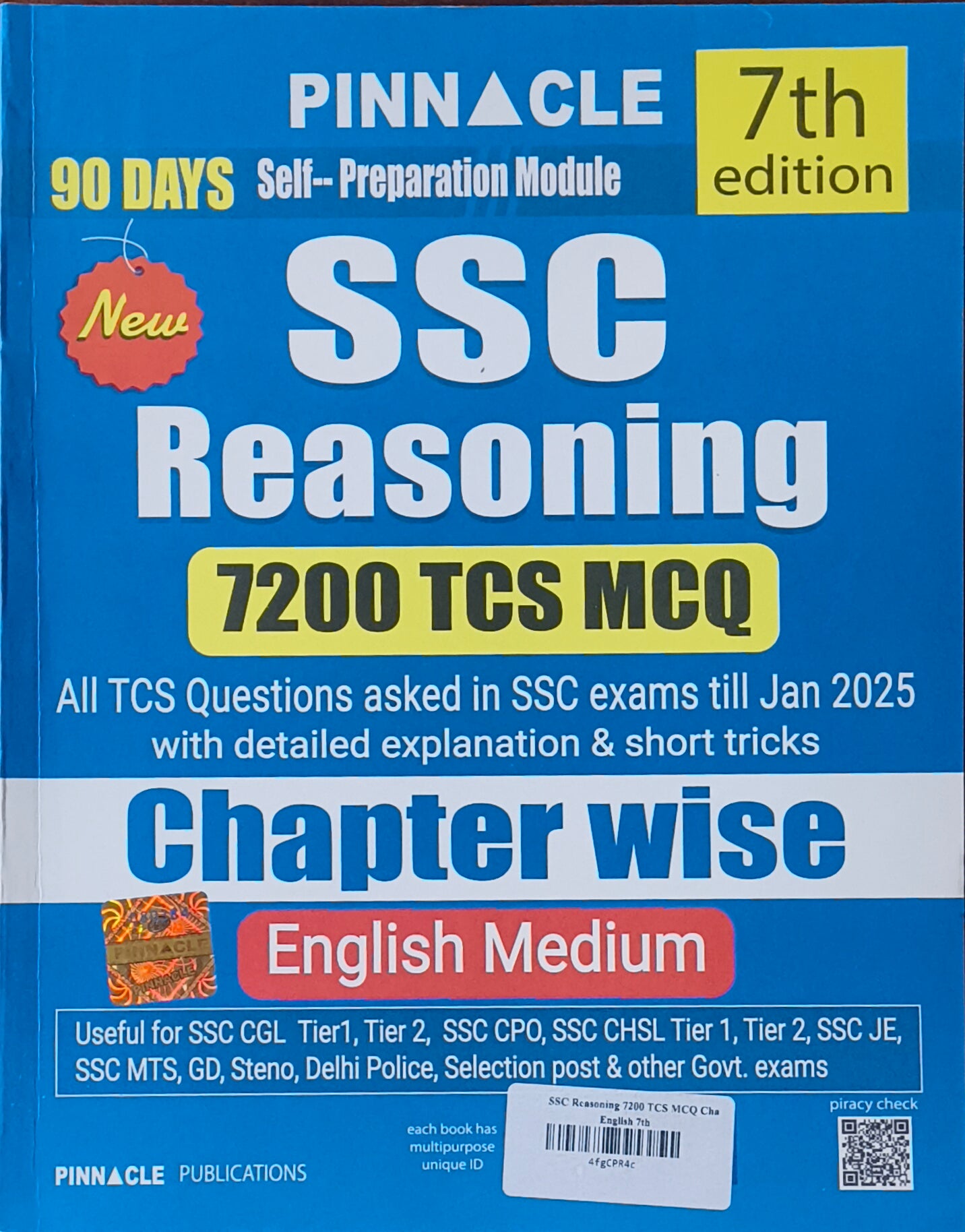 A comprehensive reasoning guide for SSC aspirants, this book includes chapterwise solved previous year questions from exams like SSC CGL, CHSL, MTS, GD, and more. Covers all important topics such as analogy, classification, series, coding-decoding, blood relation, direction sense, puzzles, and non-verbal reasoning. Detailed solutions and smart techniques make it an essential resource for English-medium candidates preparing for competitive exams.