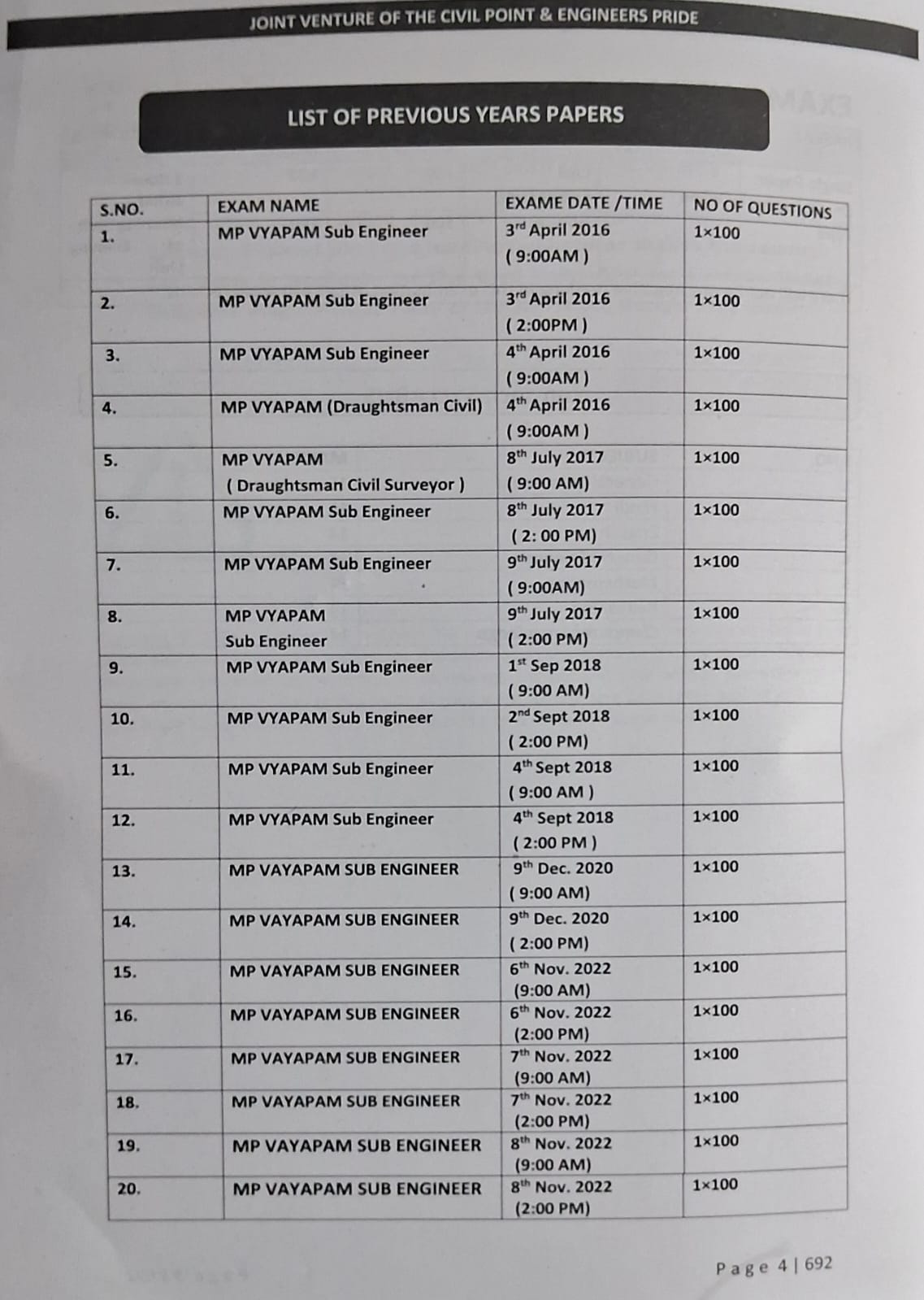 The Civil Point - MP Sub Engineer 2025β26: Civil Engineering Previous Years Papers (4th Edition) 21 PYQ Papers (2026-24)