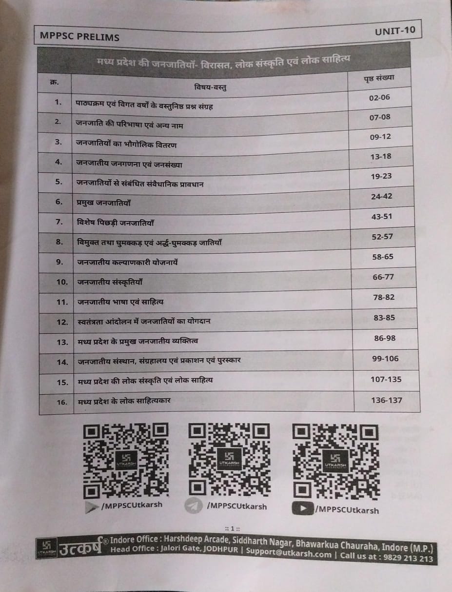 Utkarsh MPPSC Pre – MP Ki Janjatiya is a focused study material designed for MPPSC Preliminary Examination. It provides a comprehensive overview of tribal communities in Madhya Pradesh, covering their history, culture, social structure, economy, traditional practices, government schemes, and development programs. The content is exam-oriented and easy to understand, with key facts, statistics, and examples to help aspirants effectively prepare for questions related to tribal welfare and development in both Prelims and Mains.