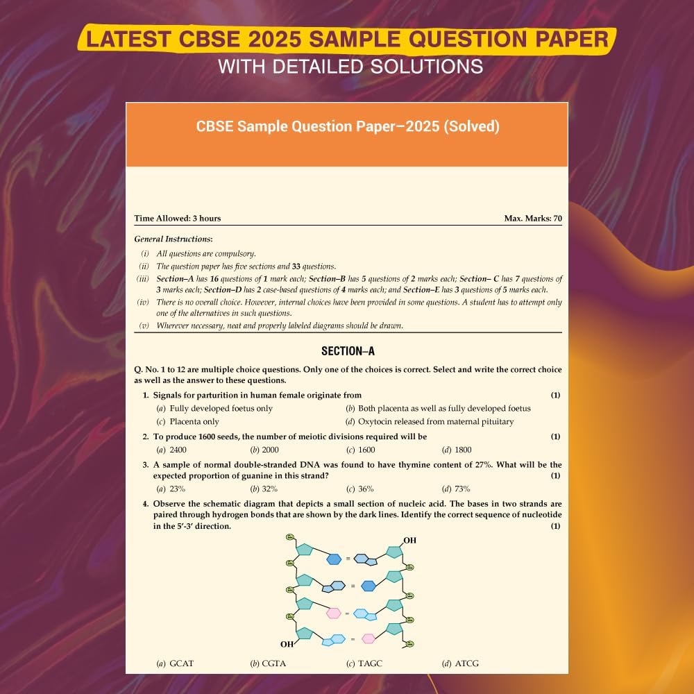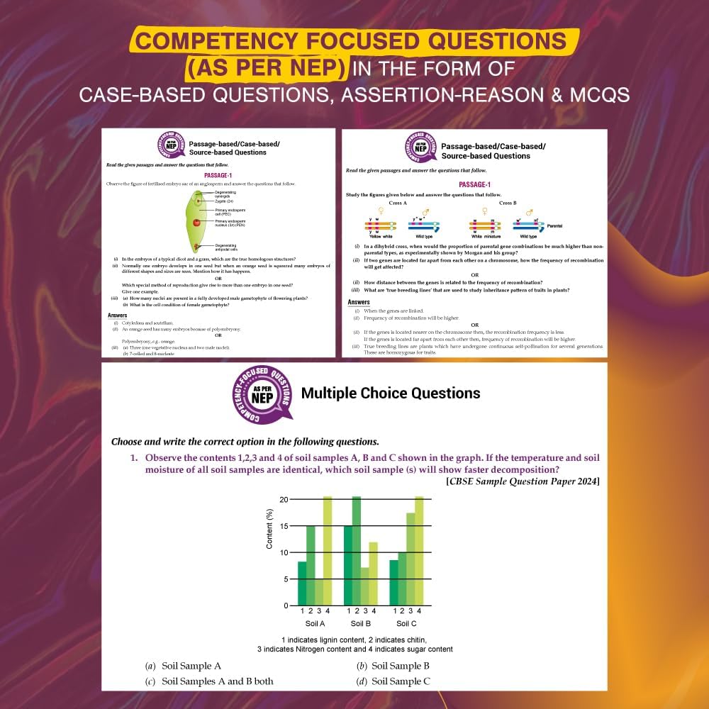 With detailed solutions, marking scheme guidance, and step-by-step explanations, this edition helps students understand key concepts from Reproduction, Genetics & Evolution, Biology and Human Welfare, Biotechnology, and Ecology effectively. It is an ideal resource for scoring high marks in CBSE Class 12 Biology and strengthening preparation for competitive exams like NEET.