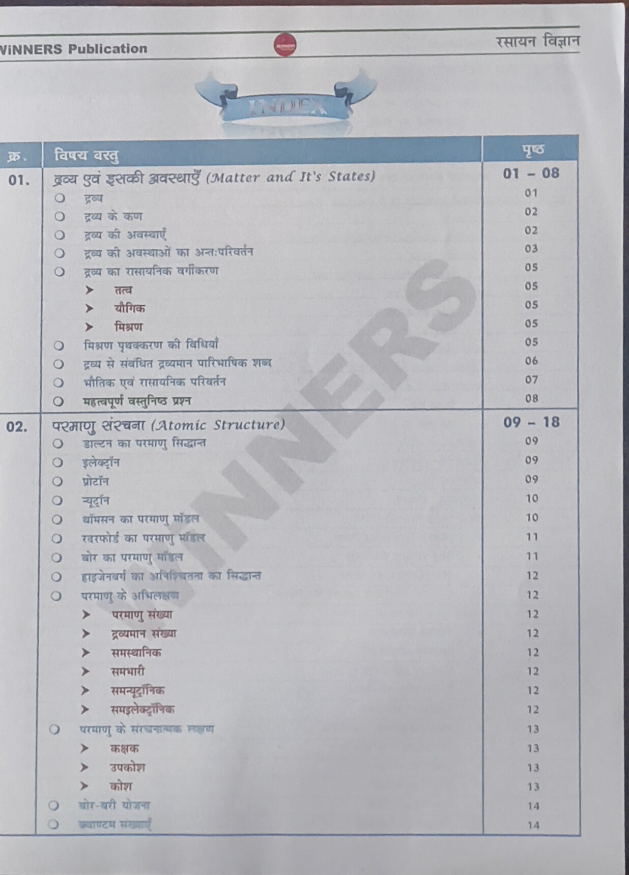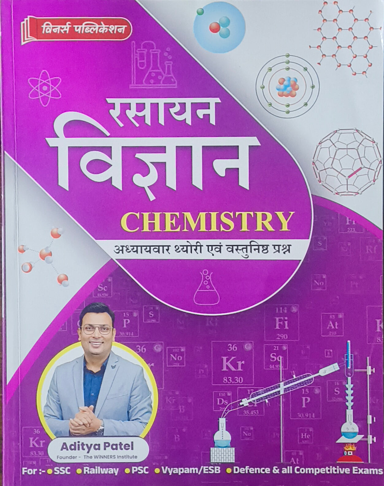 Winner's Rasayan Vigyan is tailored for aspirants preparing for MP Police, Patwari, MPSI, Group 2, Group 3, Forest Guard, and other Vyapam & competitive exams. This book covers essential Chemistry topics including Elements, Compounds, Acids & Bases, Chemical Reactions, Metals & Non-Metals, Atomic Structure, Everyday Chemistry, and more. Presented in simple Hindi, it includes objective-type questions, previous year MCQs, and concept notes for quick understanding and effective revision.